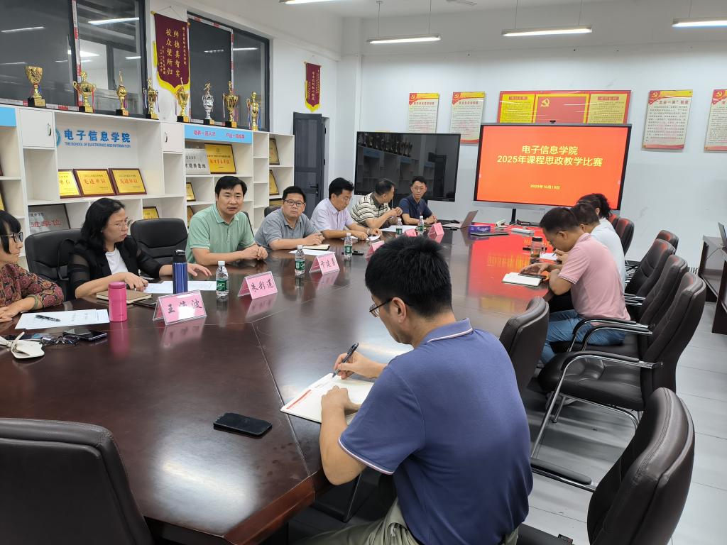 为深入贯彻落实立德树人根本任务,推进课程思政与专业教学深度融合,10月13日下午,电子信息学院在现代信息大楼8A307教室成功举办2025年课程思政教学竞赛选拔活动。本次选拔赛邀请了马克思主义学院、学校督导、学院督导、学院领导等校内教学专家担任评委,学院党总支书记卞建勇做了竞赛动员,学院分管教学工作的高龙副院长出席并主持比赛。